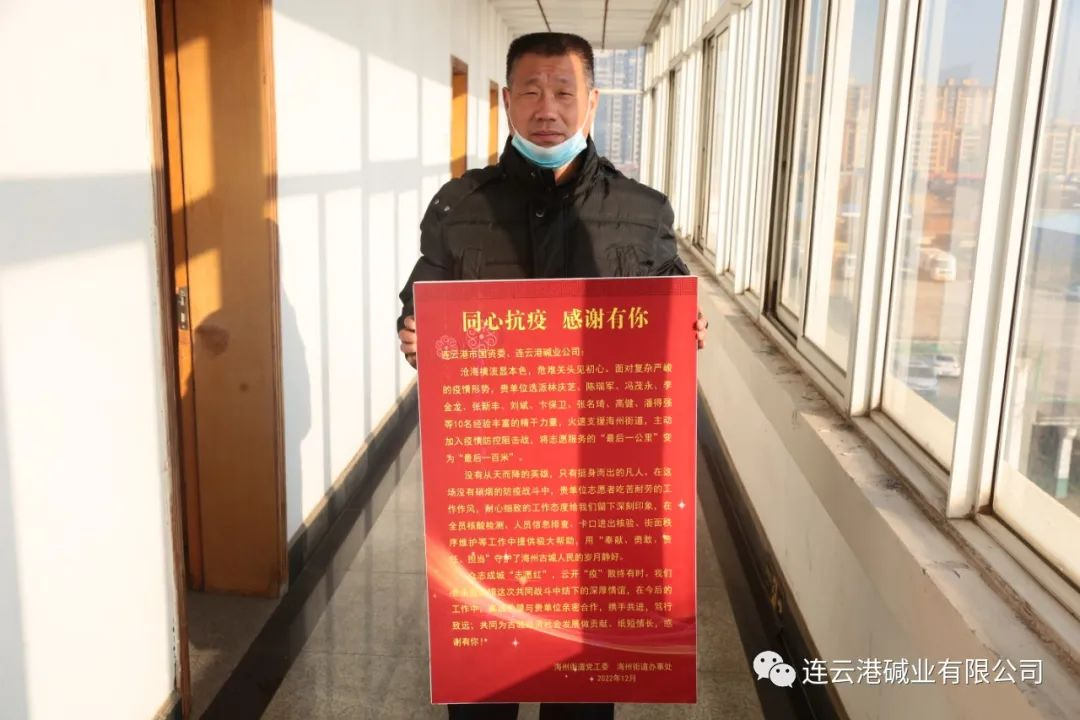 11月份疫情期間,根據(jù)市里統(tǒng)一安排,公司組織抗疫志愿者服務(wù)隊(duì),全身心投入海州區(qū)疫情防控一線。公司職工林慶芝、陳瑞軍、馮茂永、李金龍、張新豐、劉斌、卞保衛(wèi)、張名琦、高健、潘德強(qiáng)等10名職工積極響應(yīng)公司黨委的號(hào)召,投入到社區(qū)志愿者服務(wù)行列,沖鋒在抗疫最前沿,為疫情防控作出了突出貢獻(xiàn)。近日,海州街道黨工委、海州街道辦事處送來了感謝信以及錦旗。