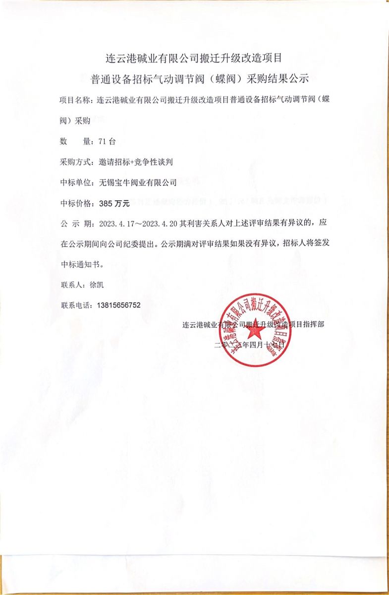 氣動調(diào)節(jié)閥(蝶閥)采購結(jié)果公示