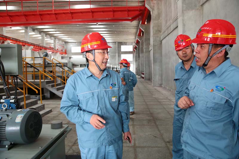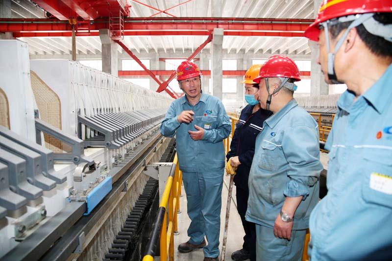 5月16日上午,公司黨委書記、董事長張衛(wèi)民,黨委副書記、總經(jīng)理李清菊,黨委委員、副總經(jīng)理黃建華,黨委委員、副總經(jīng)理焦旺盛等一行到渣處理車間指導工作。
