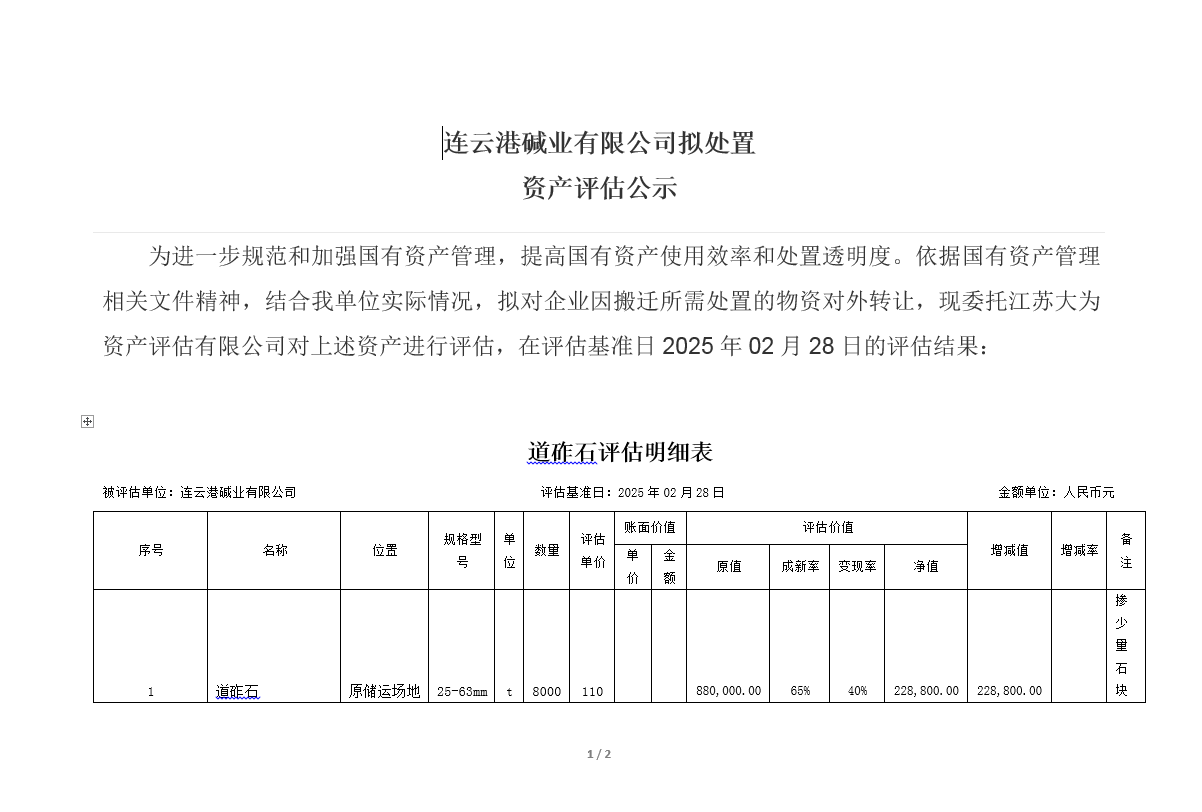 道砟石資產(chǎn)評(píng)估公示